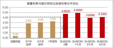 协议存款利率一般高于普通储蓄,截至2012年12月31日,从2周到6个月的银行间同业拆借利率在3.8996-4.6820%之间,均高于同期一年定存利率。